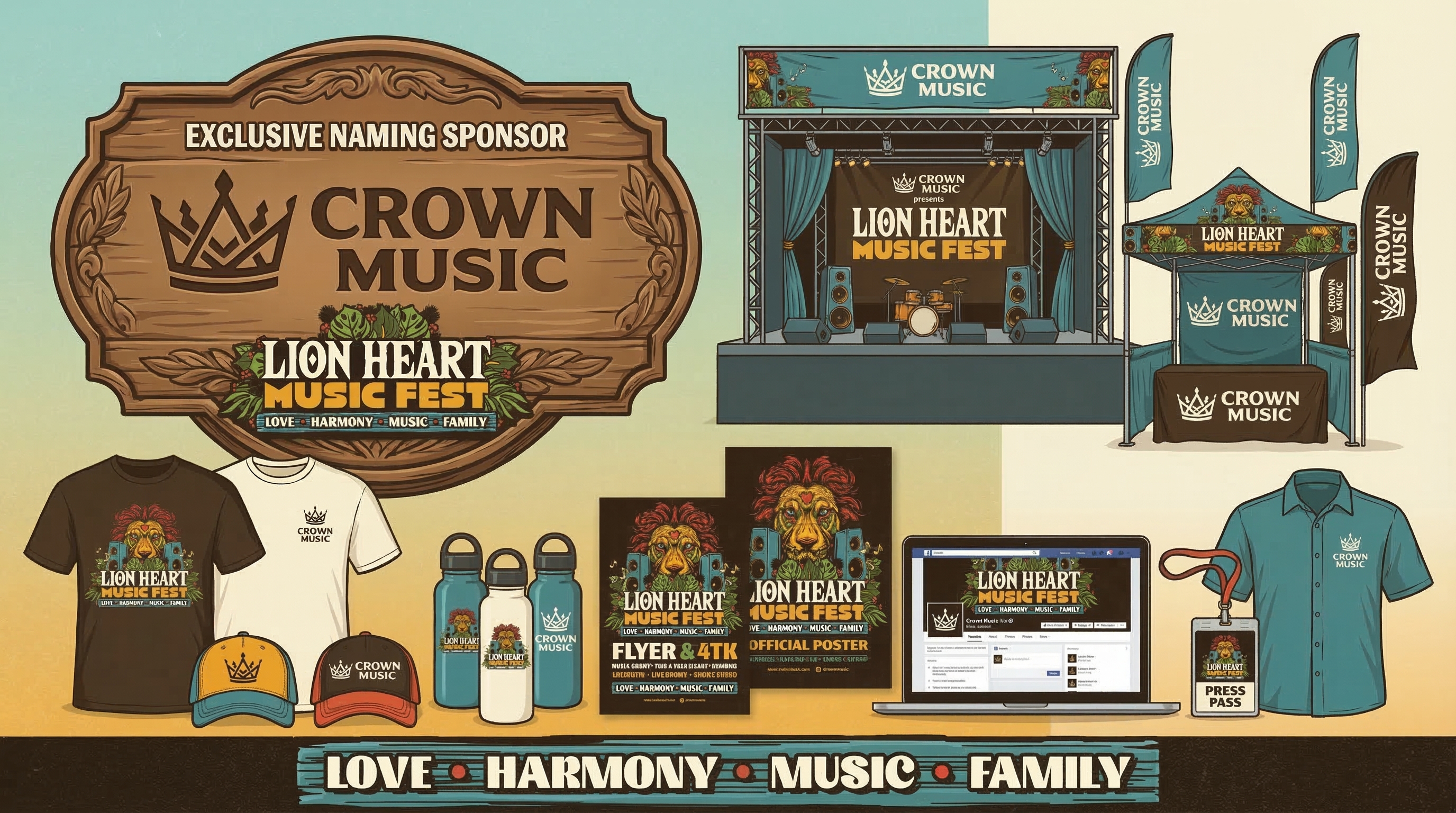 - Co-branded festival merchandise (t-shirts, hats, water bottles)